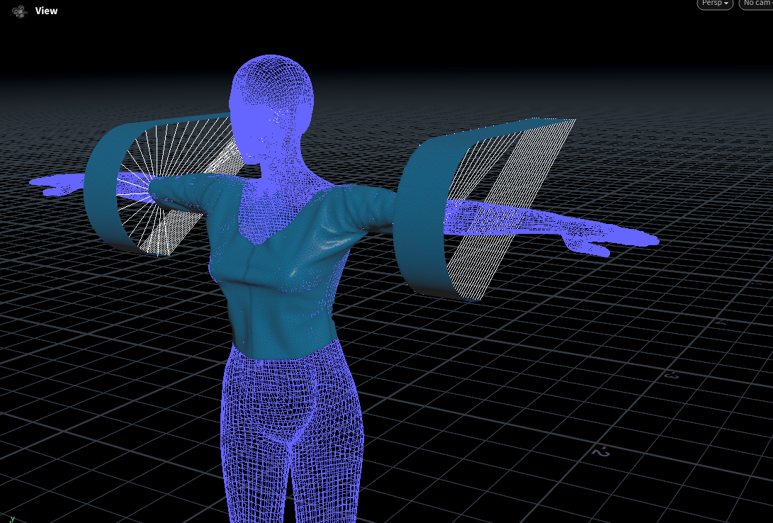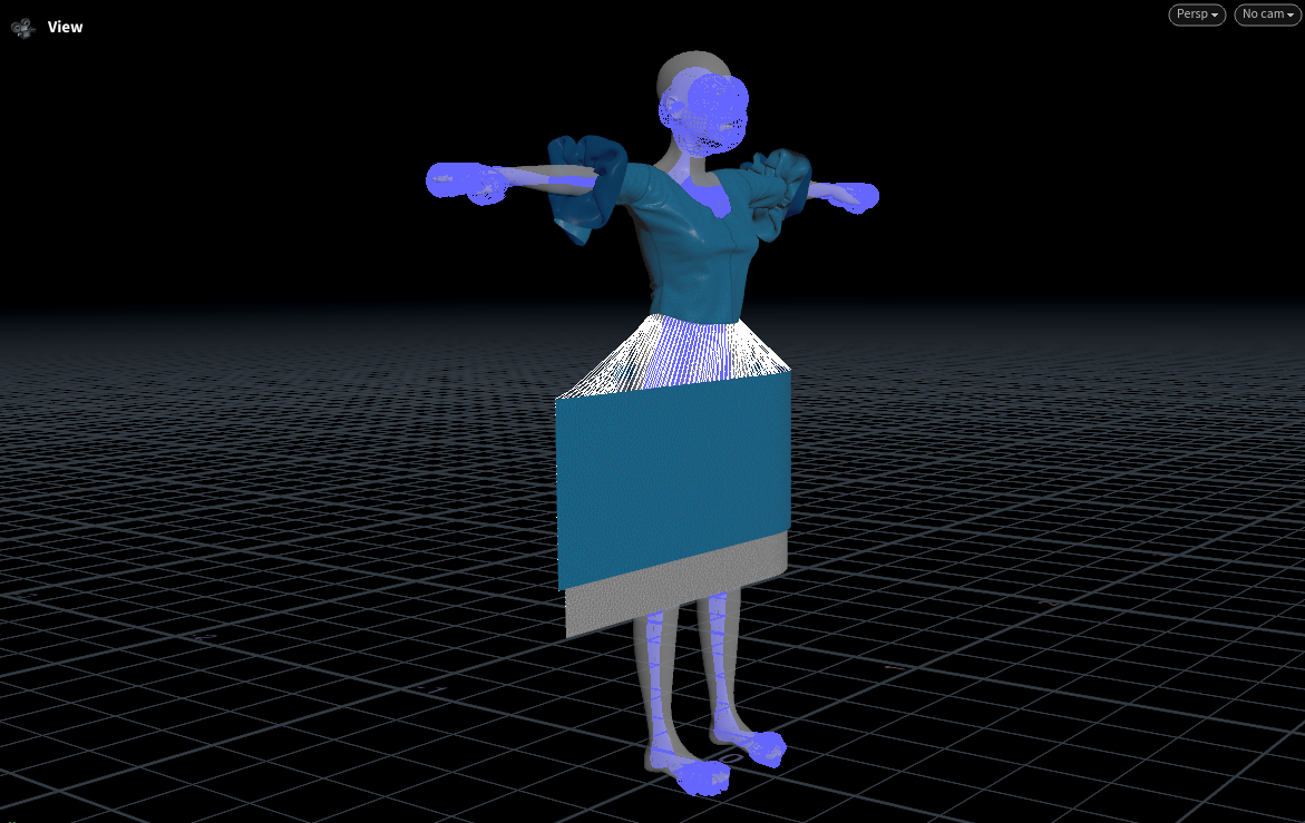 To prevent the cloth from intersecting with the hips of the model itself from the initial pose, I found that I could use “Inflate Collisions” to start the collision geometry smaller and inflate it over time.